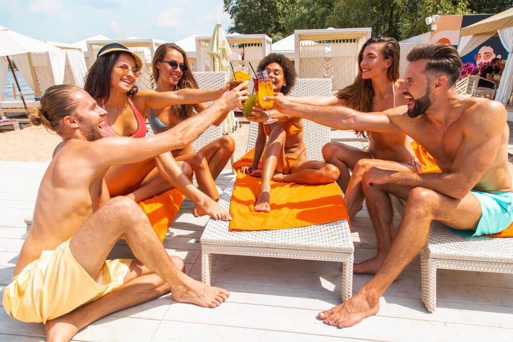 - Stay past sunset to experience the transition from beach club to party destination