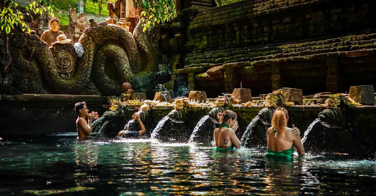 Often performed at holy springs or temples, such as the revered Tirta Empul, participants immerse themselves in sacred water, guided by a pemangku (Balinese priest) or a spiritual guide.