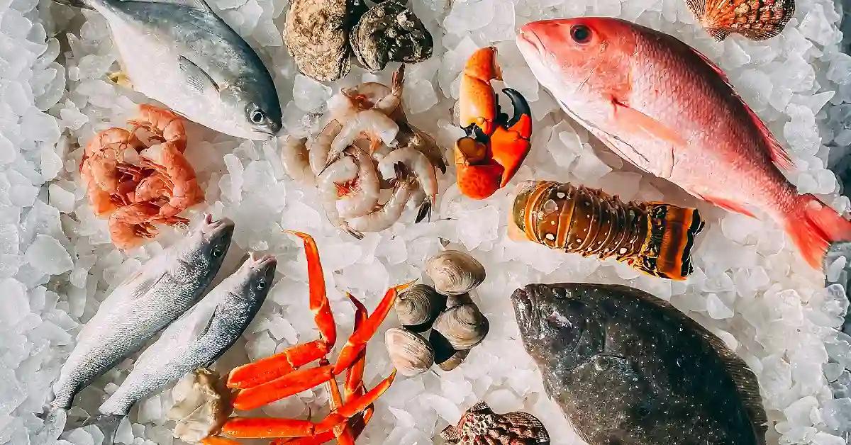 Anda bisa pilih ikan, udang, atau kerang favorit Anda langsung dari pajangan es.
