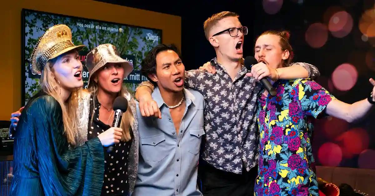 Di sini, pengalaman karaokenya dilakukan bersama-sama di area terbuka.